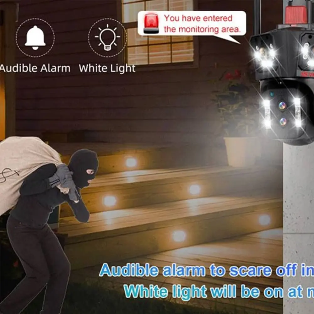 دوربین V380 مدل A3HF با طراحی منحصربه‌فرد چهار لنزه، یکی از پیشرفته‌ترین دوربین‌های نظارتی در دسته مینی اسپیددام است که ترکیبی از پوشش گسترده، دقت بالا و عملکرد هوشمند را ارائه می‌دهد.