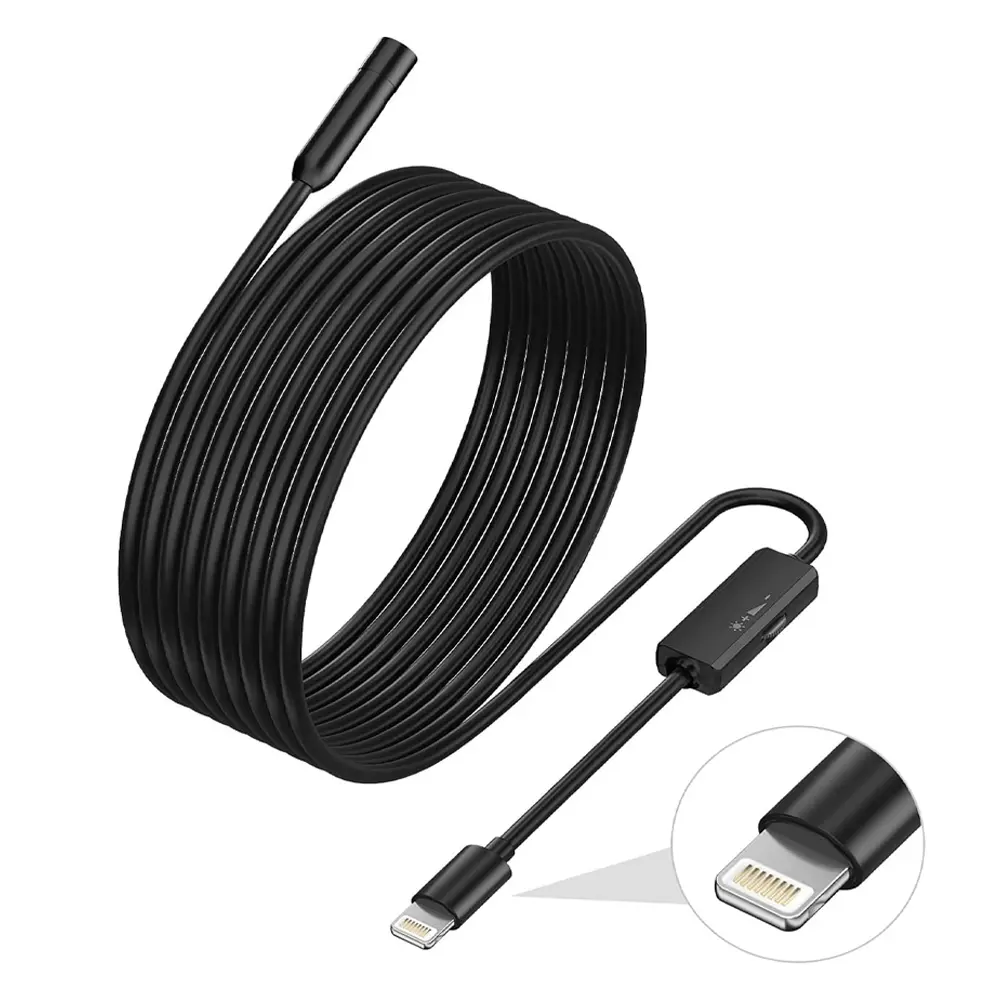 دوربین اندوسکوپی Lightning (iOS) یک دستگاه کوچک، هوشمند و بسیار کاربردی است که با طراحی نازک و فناوری پیشرفته، دسترسی به نقاط تنگ و غیرقابل مشاهده را آسان میکند. قطر این دوربین تنها 8 میلیمتر است و به راحتی از لولههای باریک، شکافهای داخل دیوار، مجاری هوا و سایر فضاهای محدود عبور میکند.