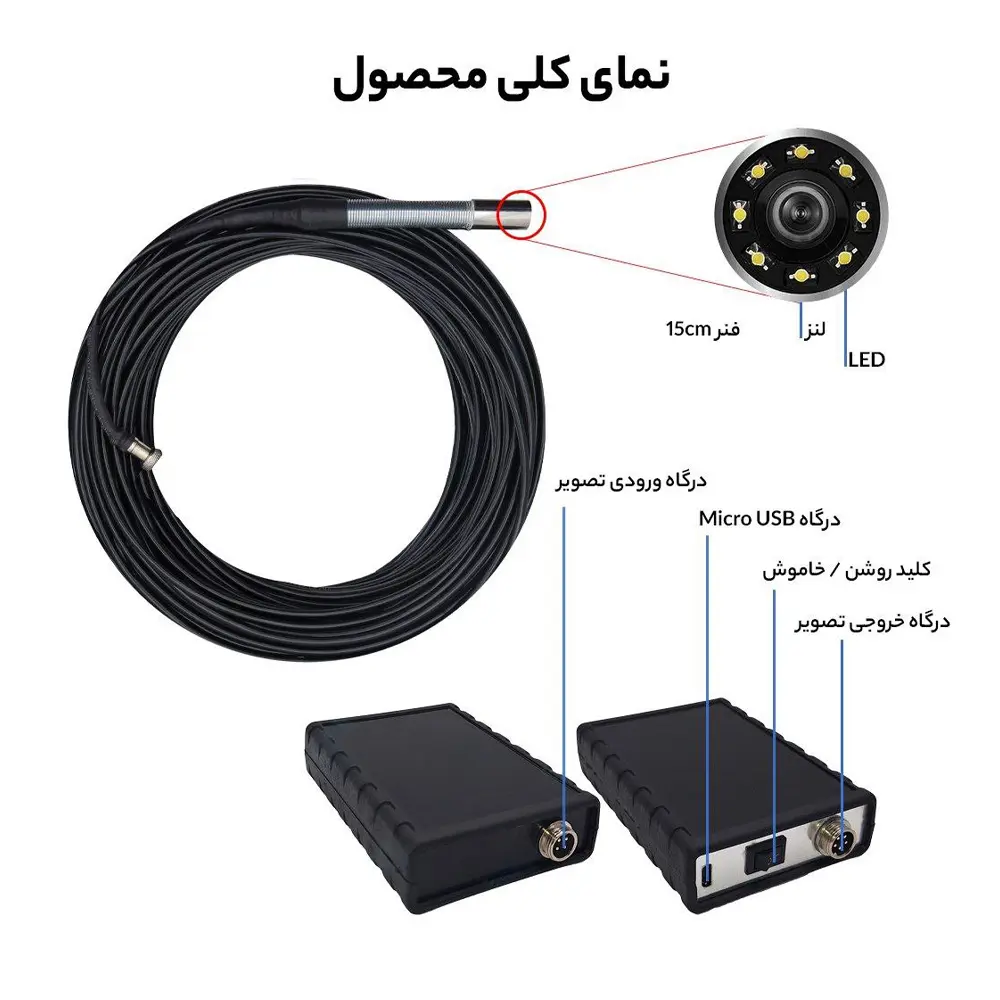 کابل دوربین به‌گونه‌ای طراحی شده که انعطاف‌پذیری بسیار بالایی دارد و به‌راحتی از میان پیچ‌و‌خم‌های تیز، زانوها و فضاهای باریک عبور می‌کند. همچنین، سر دوربین مجهز به فنر ۱۵ سانتی‌متری است که هدایت دقیق‌تر و روان‌تر آن را در مسیرهای دشوار ممکن می‌سازد و از برخورد مستقیم لنز با دیواره‌ها جلوگیری می‌کند.