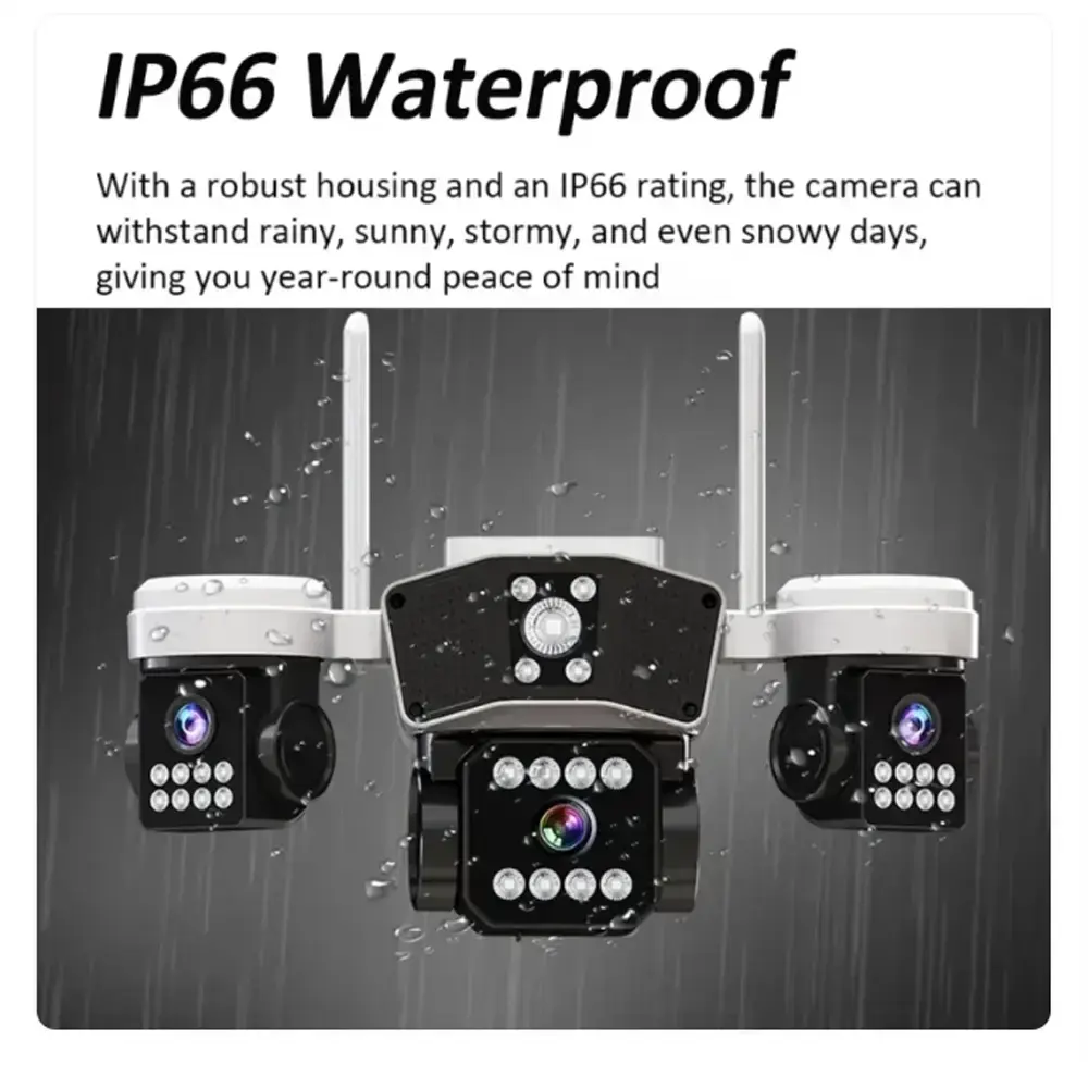 با این ترکیب، دوربین تقریباً تمام محیط اطراف خود را پوشش میدهد و نقطه کور بسیار کمی دارد، که آن را به گزینهای ایدهآل برای نظارت گسترده در فضاهای باز تبدیل میکند.