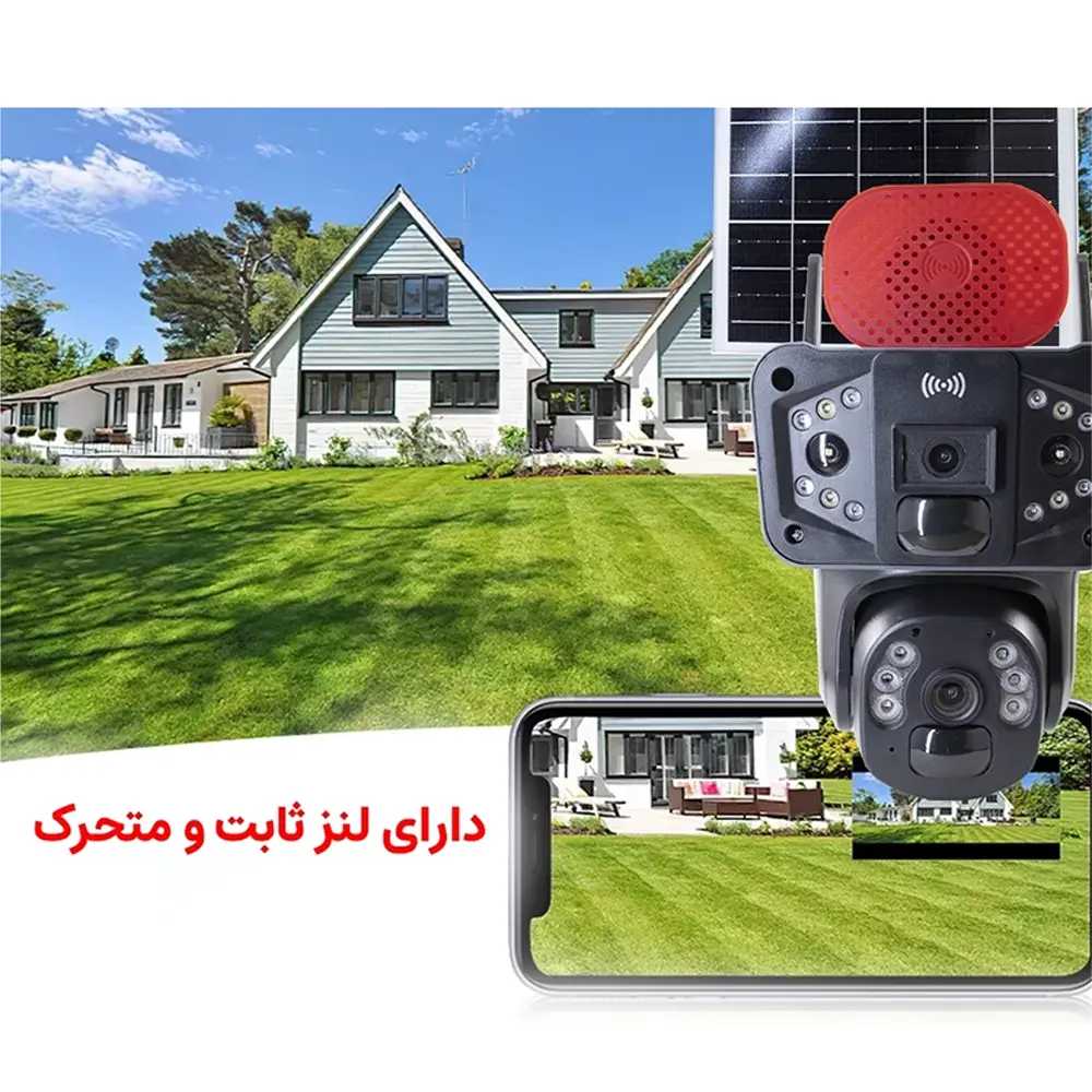 ترکیبی از استقلال انرژی، هوش مصنوعی و پوشش تصویری پویا: دوربین نظارتی سولار دو لنزه با اتصال 4G، زاویه دید گسترده و قابلیت چرخش آزاد. این دستگاه بدون نیاز به برق شهری یا شبکه وایفای، امنیت فضاهای باز از حیاط و باغ تا انبار و مناطق دورافتاده را بهصورت پایدار و بلادرنگ تضمین میکند.