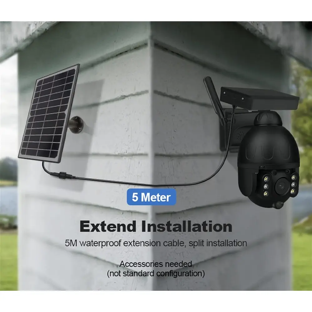 همچنین، پایه جداییپذیر برای پنل خورشیدی وجود دارد که امکان نصب پنل در جهت مناسب نور خورشید حتی در فاصله دور از دوربین را فراهم میکند و کارایی شارژ را به حداکثر میرساند.